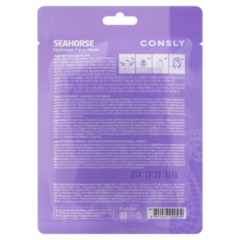 Гидрогелевая маска с экстрактом морского конька, 20мл, Consly.