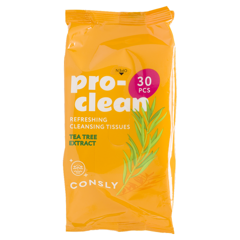 Очищающие и освежающие мицеллярные салфетки с экстрактом чайного дерева, 30шт, Consly Consly Pro-Clean Refreshing Cleansing Tissues with Tea Tree Extract, 30pcs